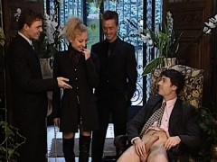 Facialized newbie joining in retro threesome