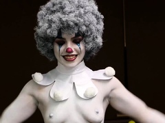 Sexy babe wears clown makeup and teases