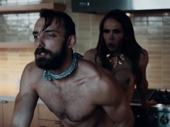 Shemale punisher Jeniffer Satine cums on a dude's chest